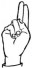 На ћирилици написано КОСТАДИН РАДОЈИЧИЋ састоји се из 17 слова [?]. Исписано ћириличном једноручном азбуком за глувонеме: